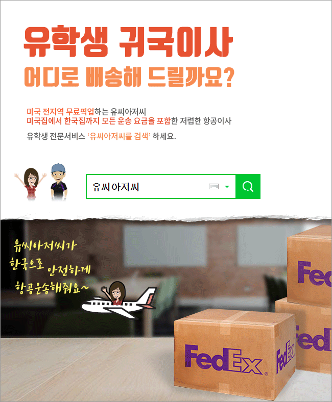 [유씨아저씨] 유학생 귀국이사 미국 전지역 무료픽업으로 편하게, 항공운송으로 빠르게, 레퍼럴로 귀국이사 비용 저렴하게~