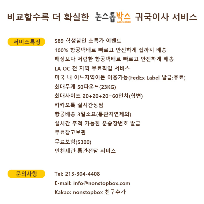 [전지역 무료픽업 귀국이사 $89불 할인이벤트] 논스톱박스 항공배송으로 비교할수록 더 확실한 귀국택배 프리미엄 서비스