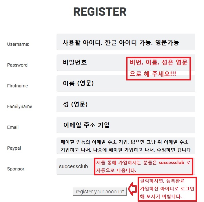가입링크 클릭하시면, 위에 메뉴에서 REGISTER 를 클릭 하시면 다음 페이지가 나옵니다.