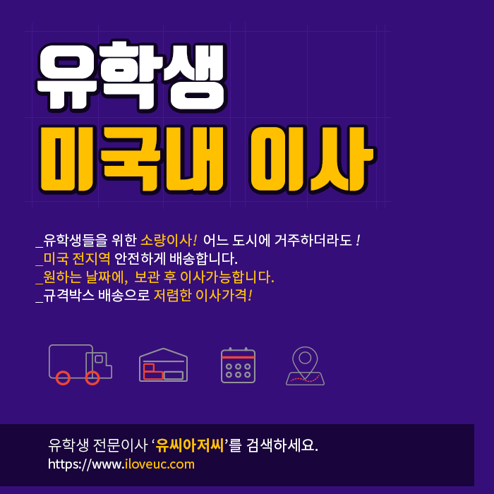 유학생 미국내 이사 서비스- 타주이사, 로컬이사 유학생 소량이사에 충분한 유씨아저씨 이사서비스