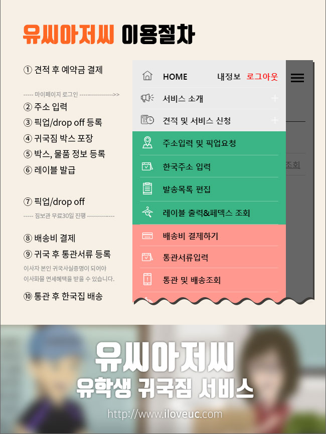 * 유씨아저씨 유학생 귀국짐 서비스 홈페이지는